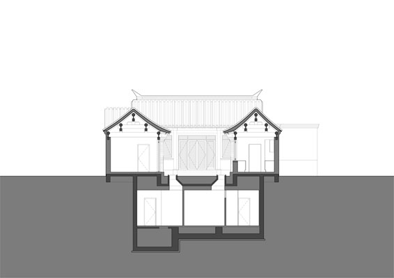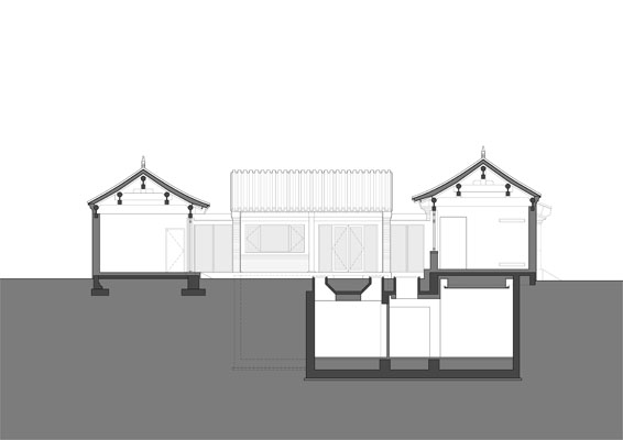 四合院位于北京市东城区白米仓胡同内,面积虽然不大,空间结构却相对完整。原有建筑已相当破败且难以修复,业主决定将其推倒后重建。新建房子的地面层维持原有建筑的基底和开间布局,仍然采用中国传统建筑的木梁柱结构、灰砖墙和瓦屋顶。局部开挖的地下室采用钢筋混凝土结构,增加了使用空间。庭院内的两株枣树和一株香椿树被小心地保留。