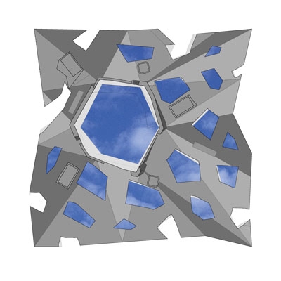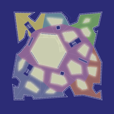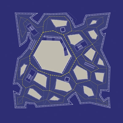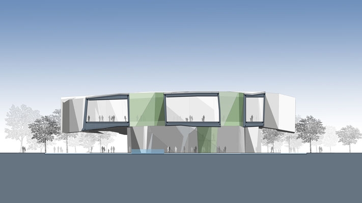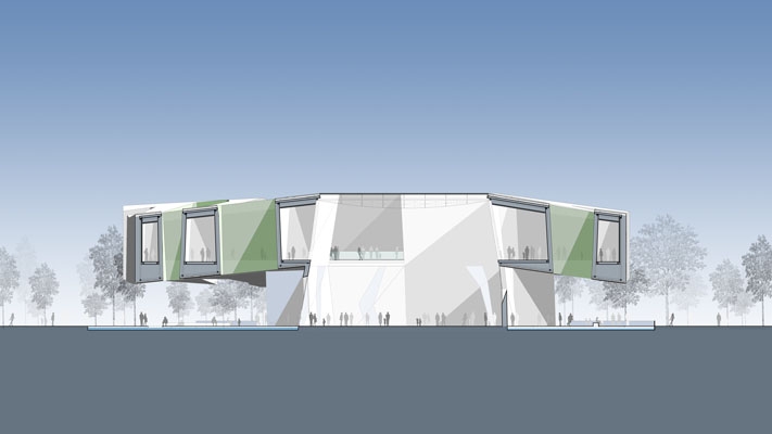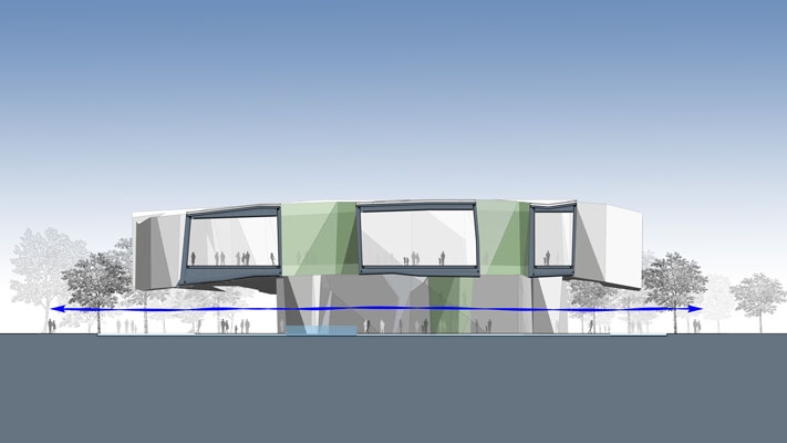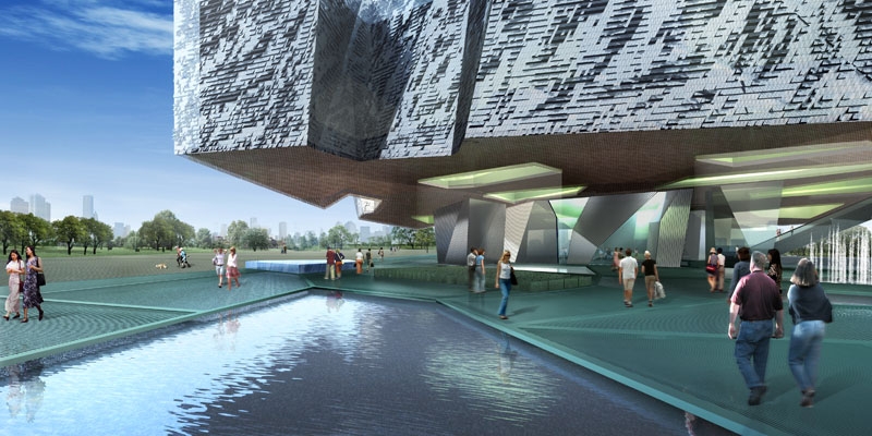 建筑体量被托举到空中,向四周伸展,地面的广场和景观则留给公众;生动变化的体量使人们从任何方向都不会看到完全一样的景象,很难定义它是一棵大树还是一片树林,或者可以说是“一棵树的森林”。