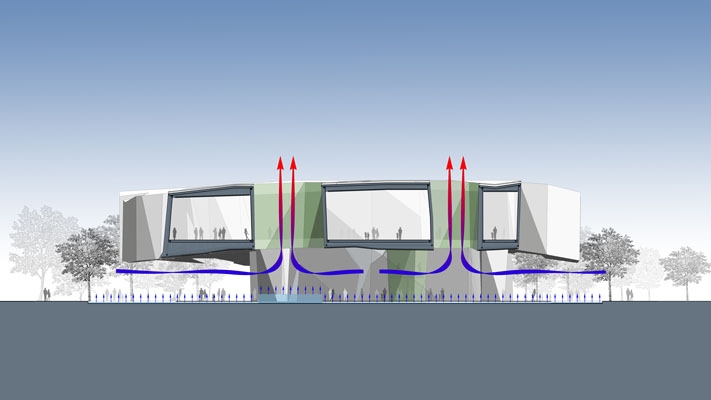 世博会关注自然环境,倡导人类社会的“绿色生存”,希望将人类自身的生生不息融入自然界的造化之中。在都市生活中,人们渴望重新邂逅已经习以为常同时又无所不在的大自然,不管那是一片天空、一缕阳光,还是一阵风、一场雨... 展馆是有生命的建筑,能够与自然环境密切地交织在一起,相互渗透、彼此回应。