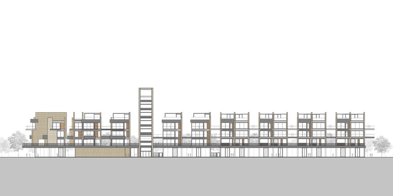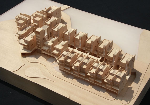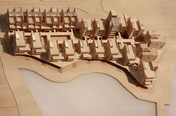 每栋居住单元的北侧为封闭的实墙,房间向南面向“内院空间”都是开敞的,从房间生长出来的平台高低错落。每户有三个主要平台:湖景或街景平台、内院平台、屋顶平台。各自不同的空间体验体现了不同情调。湖景或街景平台开阔外向,内院平台安静私密,屋顶平台则最适宜夜空下,脱离了城市喧嚣的闲适。