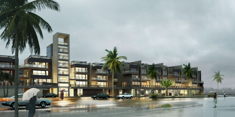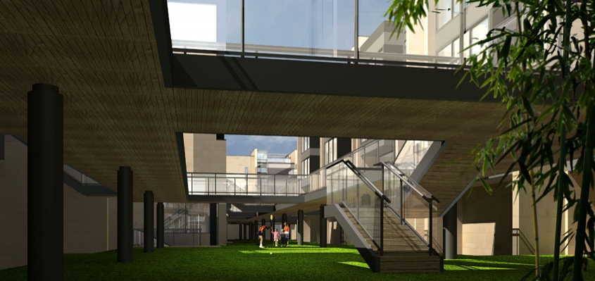 二层的大平台明确划分了底层商业部分与上层的生活部分,避免了地面公共空间对家居生活的干扰,使生活空间更好地延伸到周边的景观,内院的景观更丰富、立体。
