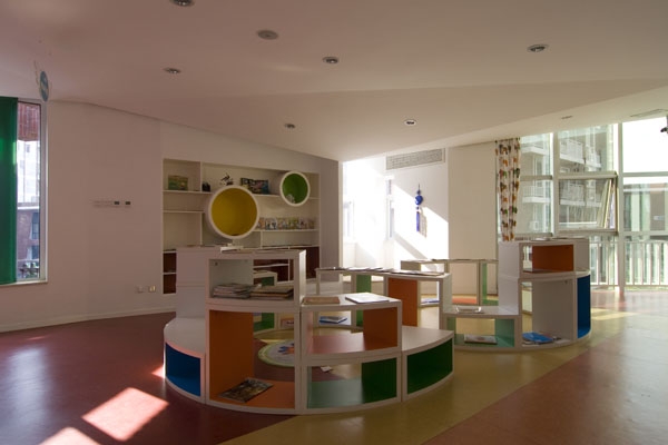 阅读区的家具既是书架又是桌子、凳子,还能象‘积木’一样自由组合