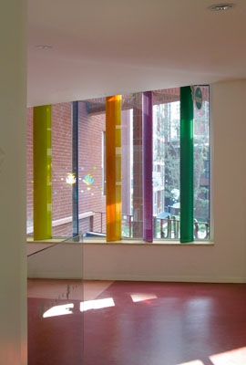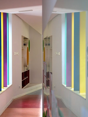 装有彩色玻璃板的大窗是操纵光线变化的‘万花筒’