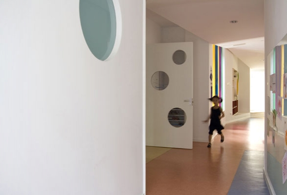 环境对儿童的影响是非常直接的,色彩与光线设计是这个项目中特别重要的内容。相对于成人,小孩子的活动范围很小,幼儿园在他们的生活中构成了一个小小的世界。很多想法都源于以他们的视线去体验这个世界,每一个元素都扮演着重要的角色,设计中把它们当作独特的个体来对待: