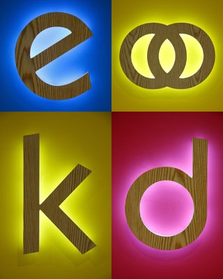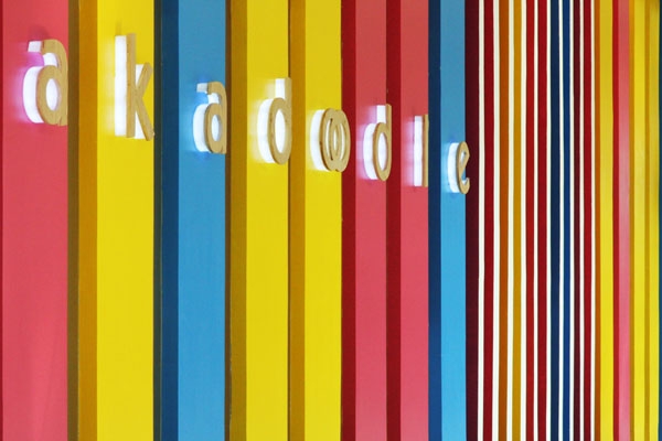 艾涂图的标志是溅开的颜料,曲线型的轮廓线以不同尺度出现在玻璃门、前台背景墙和学生艺术作品展示墙上,与横平竖直的空间北京形成对比和互补的关系。